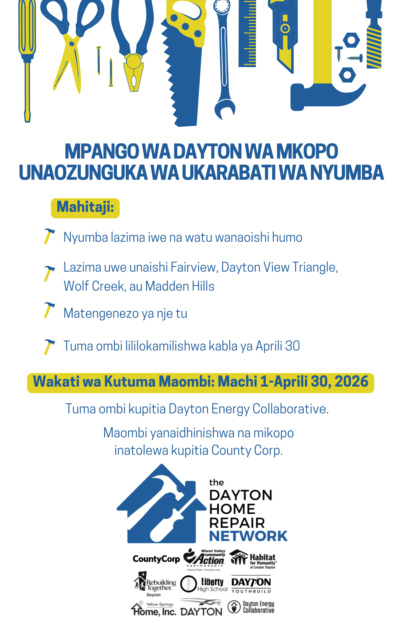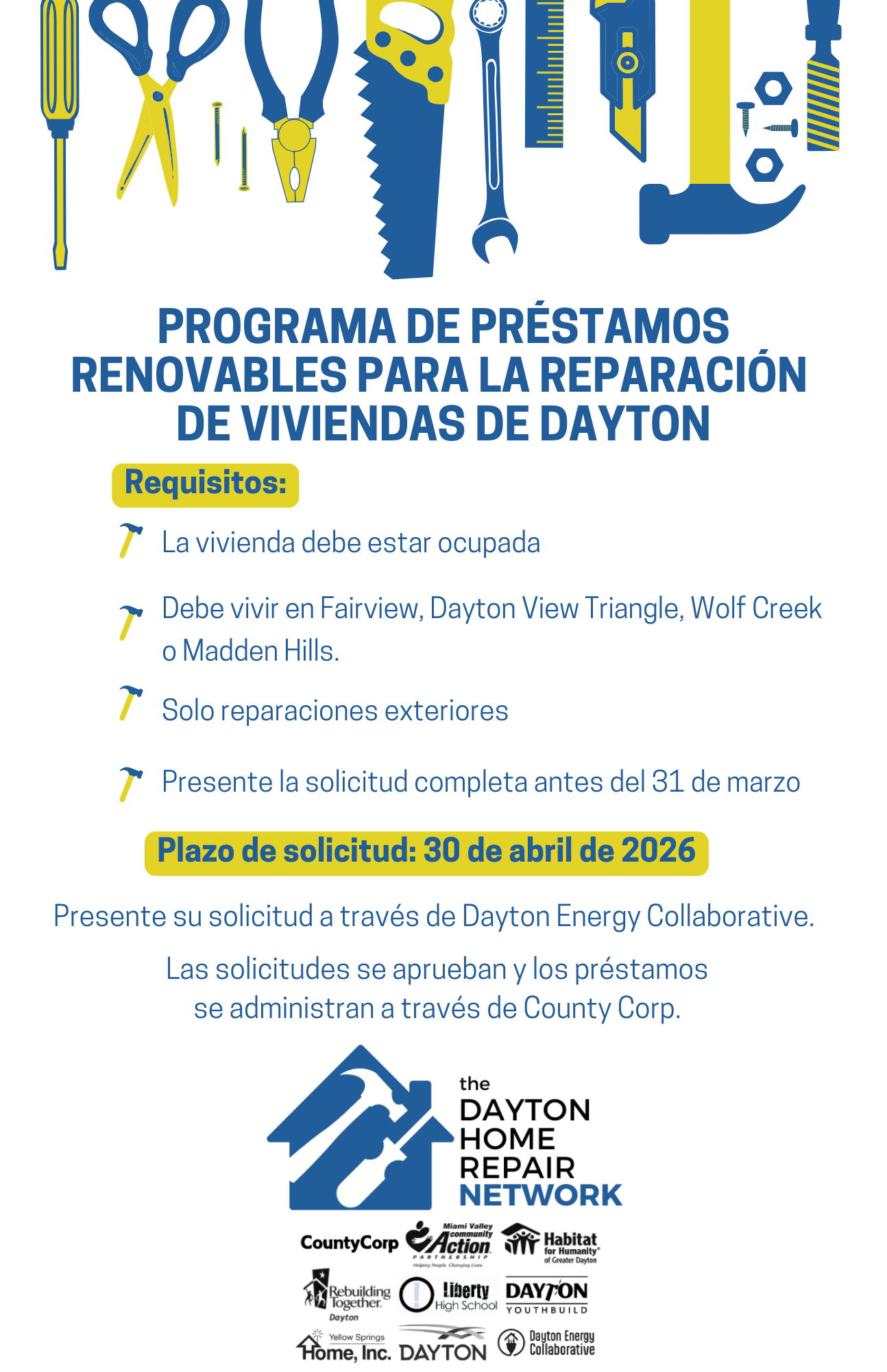 Dayton Energy Collaborative is supporting the program through intake and application support. County Corp will administer the actual loans and loan agreements.